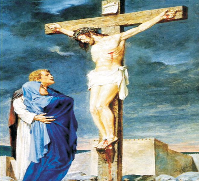 Jesus completed hissacrificial life on mount Calvary.Even as he was hanging on thecross between two notoriousthieves and being mocked bythe soldiers around, his eyes were on some of his beloved ones, including his mother Mary,down there.There were, standing beneath the cross, his own beloved mother, Mary, the sisterof his mother and wife ofClopas, and Mary Magdalene.Seeing his mother and the disciple he loved, Jesus told hismother, “Woman, here is, your son!” Then he said to the disciple, “Here is, your mother!” (Jn. 19:25-27).When Jesus entrusted his mother to the care of his beloved disciple and thedisciple to his mother, Jesus was entrusting all of us to his mother and Mary, his mother, to us For a Christian, the motherhood of Mary is a spiritual one. She became our motherby participating in God's salvific plan with Jesus and by enduring the pain and suffering associated with it.