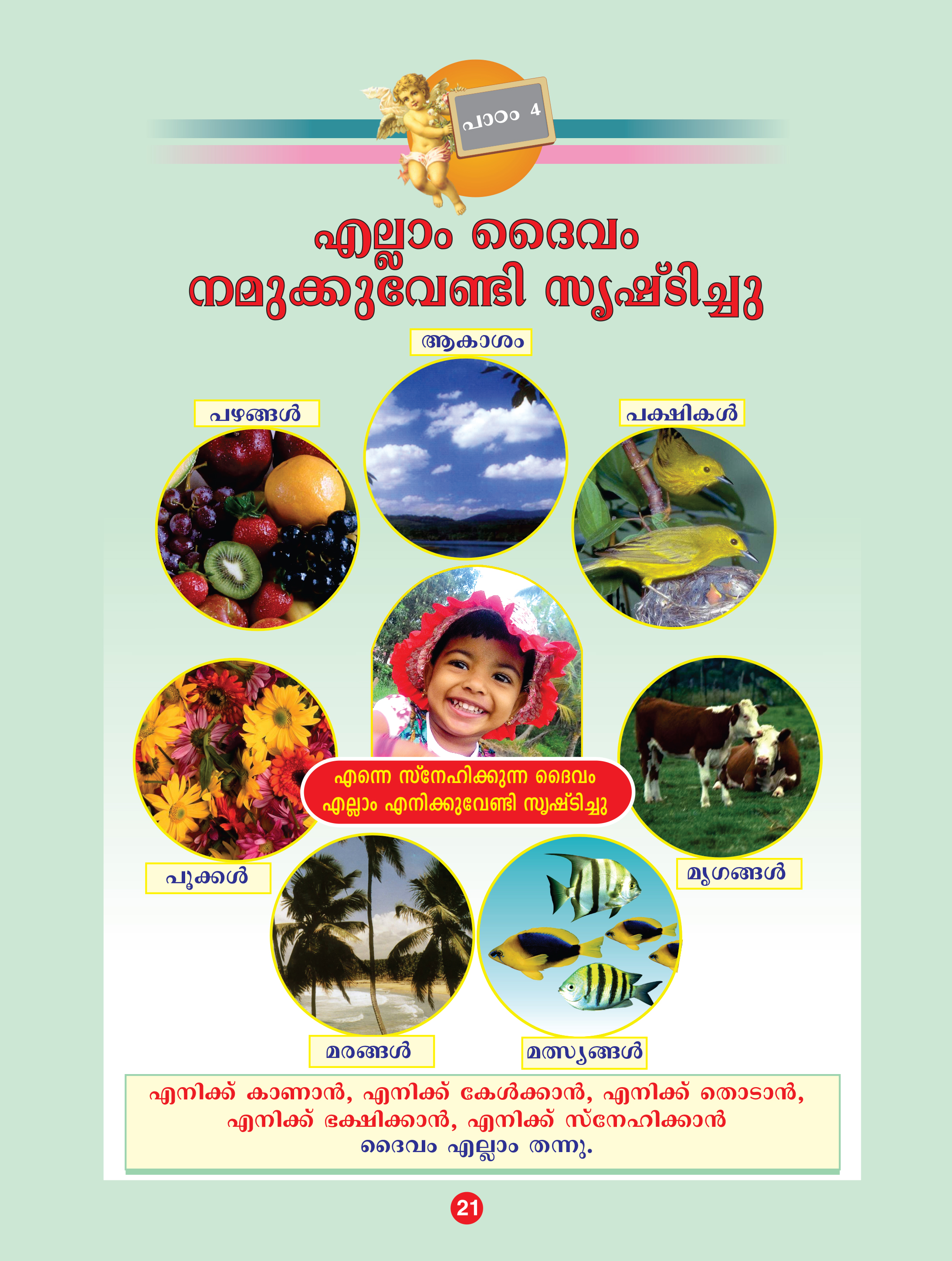 പേജ് 13 ലെ ചിത്രത്തിന്റെ മാതൃകയില് വിവിധ സൃഷ്ട ജീവജാലങ്ങളുടെ ചിത്രം ഒട്ടിച്ച് നടുവില് അവരുടെ പേര് എഴുതാവുന്നതാണ്.