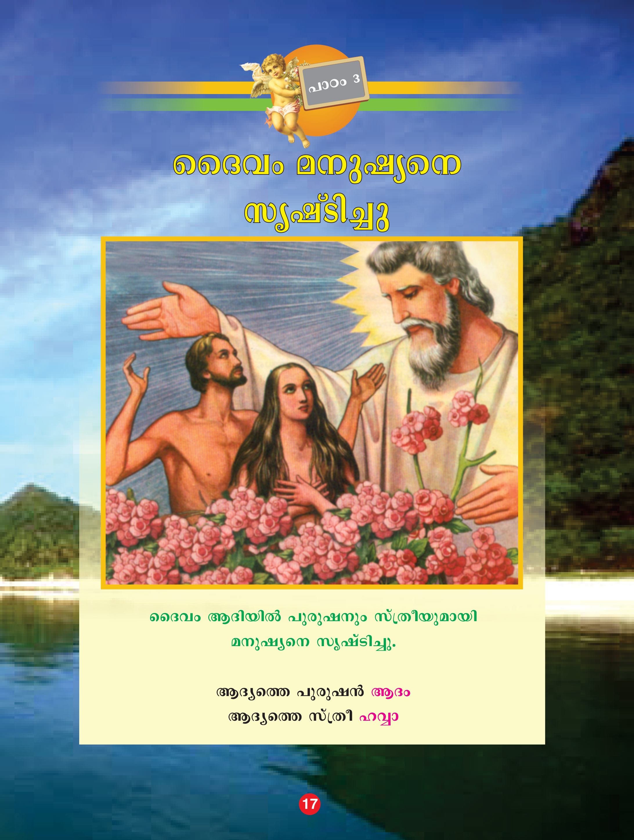 ദൈവം മനുഷ്യന് ജീവന് നല്കുന്ന രംഗം ഭാവാത്മകമായി അവതരിപ്പിക്കാം.