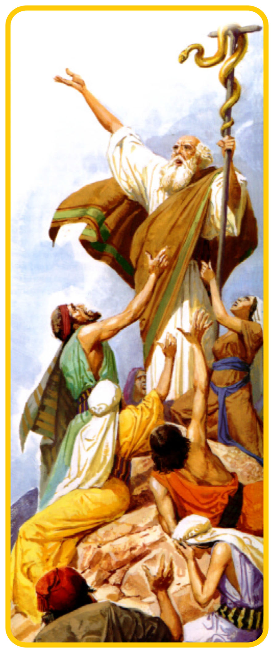 मिस्र की गुलामी से स्वतंत्र होकरकनान देष की ओर अपनी यात्रा में इस्राएलीजनता ईष्वर और मूसा के विरुद्ध भुनभुनाई। तब ईष्वर ने जनता के बीचवि ौले साँपों को भेजा। उनके जहर से प्रभावित होकर बहुत सारे लोग मर गए। इस्राएल जनता ने मूसा के पास आकर कहा, ‘‘हमने ईष्वर तथा आपके विरुद्ध भुनभुनाकर पाप किया है। आप ईष्वर से प्रार्थना कीजिए कि वह हमारे बीच से साँपोंको हटाए’’। मूसा ने जनता के लिए प्रभु सेप्रार्थना की। ईष्वर ने मूसा से कहा, ‘‘काँसेका एक साँप बनाओ और उसे डण्डे परलगाओ। जो साँप द्वारा काटा गया है वहउसकी ओर दृ िट डाले और वह अच्छा होजाएगा’’। मूसा ने काँसे का साँप बनवायाऔर उसे डण्डे पर लगवा दिया। जब किसीको साँप काटता था तो वह काँसे के साँप कीओर दृ िट डालकर अच्छा हो जाता था। (गणना ग्रंथ 21ः5-9)काँसे का यह साँप एकचिह्न था, मुक्ति का चिह्न। यह चिह्न ईसामसीह में चरितार्थ हुआ। ‘‘मैं जब पृथ्वी केऊपर उठाया जाऊँगा तो सब मनु यों को अपनी ओर आर्क िात करूँगा’’ (योहन 12:32)। ईसा मसीह का यह कथन कलवारी