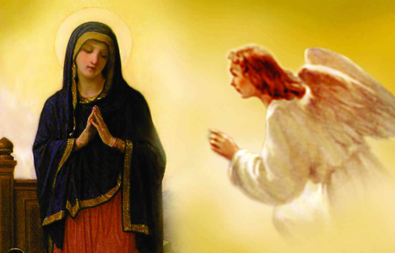 ईष्वर का दूत गलीलिया के नाज़रेत नामक नगर में एक छोटे घर में दिखाई दिया। वहाँ एक कुँवारी थी जिसकी मँगनी दाऊद के घराने के यूसुफ नामक पुरुश से हुई थी। उस कुँवारी का नाम था मरियम। गब्रिएल स्वर्गदूत मरियम के निकट आया और बोलाः ‘‘प्रणाम, प्रभु की कृपापात्री! प्रभु आपके साथ है।’’ वह इन षब्दों से घबरा गयी और मन में सोचती रही कि इस प्रणाम का अभिप्राय क्या है। तब स्वर्गदूत ने उससे कहा, ‘‘देखिए, आप गर्भवती होंगी, पुत्र प्रसव करेंगी और उनका नाम ईसा रखेंगी। वे महान होंगे और सर्वोच्च प्रभु के पुत्र कहलायेंगे। प्रभु ईष्वर उन्हें उनके पिता दाऊद का सिंहासन प्रदान करेगा। वह याकूब के घराने पर सदा-सर्वदा राज्य करेंगे और उनके राज्य का अन्त नहीं होगा।’’ पर मरियम ने स्वर्गदूत से कहाः ‘‘यह कैसे हो सकता है?मेरा तो पुरुश से संसर्ग नहीं है।’’ स्वर्गदूत ने उत्तर दियाः ‘‘पवित्रात्मा आप पर उतरेगा और सर्वोच्च प्रभु की षक्ति की छाया आप पर पडे़गी। इसलिए जो आपसे उत्पन्न होंगे, वह पवित्र होंगे और ईष्वर के पुत्र कहलायंेगे ... (लूकस 1: 28-35)