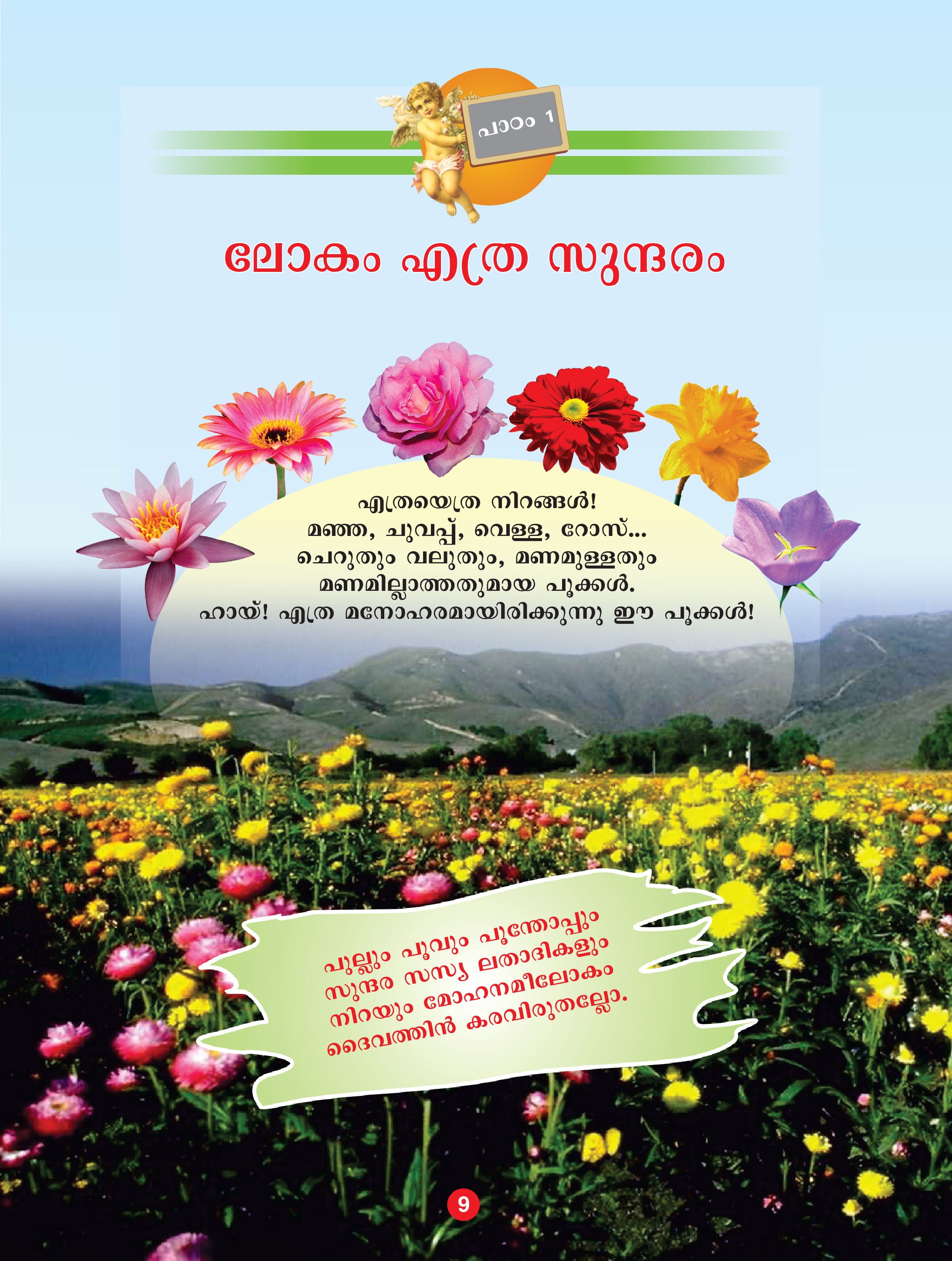 താനുള്ക്കൊള്ളുന്ന പ്രപഞ്ചത്തിന്റെ മാനോഹാരിതയും വൈവിധ്യവും അത്ഭുതത്തോടും ആകാംക്ഷയോടുംകൂടി കുട്ടി നോക്കിക്കാണുന്നു. നിറങ്ങളുടെ വ്യത്യസ്തതയും മരങ്ങളുടെ വലിപ്പച്ചെറുപ്പവും ജീവജാലങ്ങളുടെ വൈവിധ്യവും കുട്ടിയില് അത്ഭുതം ജനിപ്പിക്കുന്നു. പൂക്കളും ചെടികളും മൃഗങ്ങളുമെല്ലാം ഇടകലര്ന്ന ഈ ലോകത്തിന്റെ മനോഹാരിത കുട്ടികള്ക്ക് വിശദീകരിച്ചു കൊടുക്കണം. ചിത്രങ്ങള് കാണിച്ചും, ആവശ്യമായ വിശദീകരണങ്ങള് നല്കിയും, പ്രപഞ്ചത്തിലേയ്ക്ക് കുട്ടിയുടെ ശ്രദ്ധ തിരിക്കണം. സൂര്യനില്ലെങ്കില് നമുക്കെന്ത് സംഭവിക്കും? പഴവര്ഗ്ഗങ്ങളില്ലെങ്കിലോ?.. ഇത്യാദി ചോദ്യങ്ങള് ചര്ച്ചയ്ക്ക് വിഷയമാക്കാവുന്നതാണ്. ഇതിലൂടെ, ഈ പ്രപഞ്ചവും അതിലുള്ളതും നമുക്ക് ആവശ്യമാണെന്നും ദൈവമാണ് ഇതെല്ലാം നല്കിയതെന്നും കുട്ടി ഗ്രഹിക്കുന്നു. ഈ പാഠത്തിലൂടെ കുട്ടി സ്വായത്തമാക്കേണ്ട ബോധ്യങ്ങള്, മനോഭാവങ്ങള്, ശീലങ്ങള് എന്നിവയ്ക്ക് ഊന്നല് കൊടുത്തുകൊണ്ടായിരിക്കണം പാഠാവതരണം നടത്തേണ്ടത്.