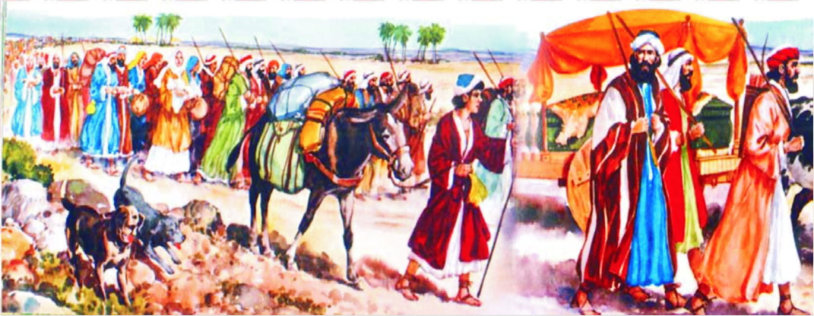 ഇസ്രായേല് ഈജിപ്തില് നിന്നും യാത്രപുറപ്പെട്ടു. അടിമത്തത്തിന്റെ ദുരിതങ്ങളില് നിന്നും ദൈവം തന്റെ ശക്തമായ കരങ്ങളാല് മോചനം നല്കിയതിന്റെ ഓര്മ അവരുടെ മനസ്സില് നിറഞ്ഞുനിന്നിരുന്നു. തിടുക്കത്തില് പെസഹാഭക്ഷണവും കഴിച്ച് വാഗ്ദത്തനാടായ കാനാന് ദേശം ലക്ഷ്യമാക്കി അവര് യാത്ര തുടര്ന്നു. കടലിന്റെ നടുവില്ക്കൂടി സര്വശക്തന് അവര്ക്ക് വഴിയൊരുക്കി. പകല് മേഘത്തൂണായും രാത്രി അഗ്നിസ്തംഭമായും ദൈവം അവരോടൊത്തുണ്ടായിരുന്നു. മന്നായും, കാടപ്പക്ഷിയും, ദാഹജലവും നല്കിയും ദൈവം അവരെ പരിപാലിച്ചു. മോശയുടെയും ജോഷ്വായുടെയും നേതൃത്വത്തില് ഇസ്രായേല് മുന്നോട്ടു നീങ്ങി; ഒരു തീര്ത്ഥാടനമായി, കാനാന് എന്ന വാഗ്ദത്തനാട്ടിലേക്ക്.